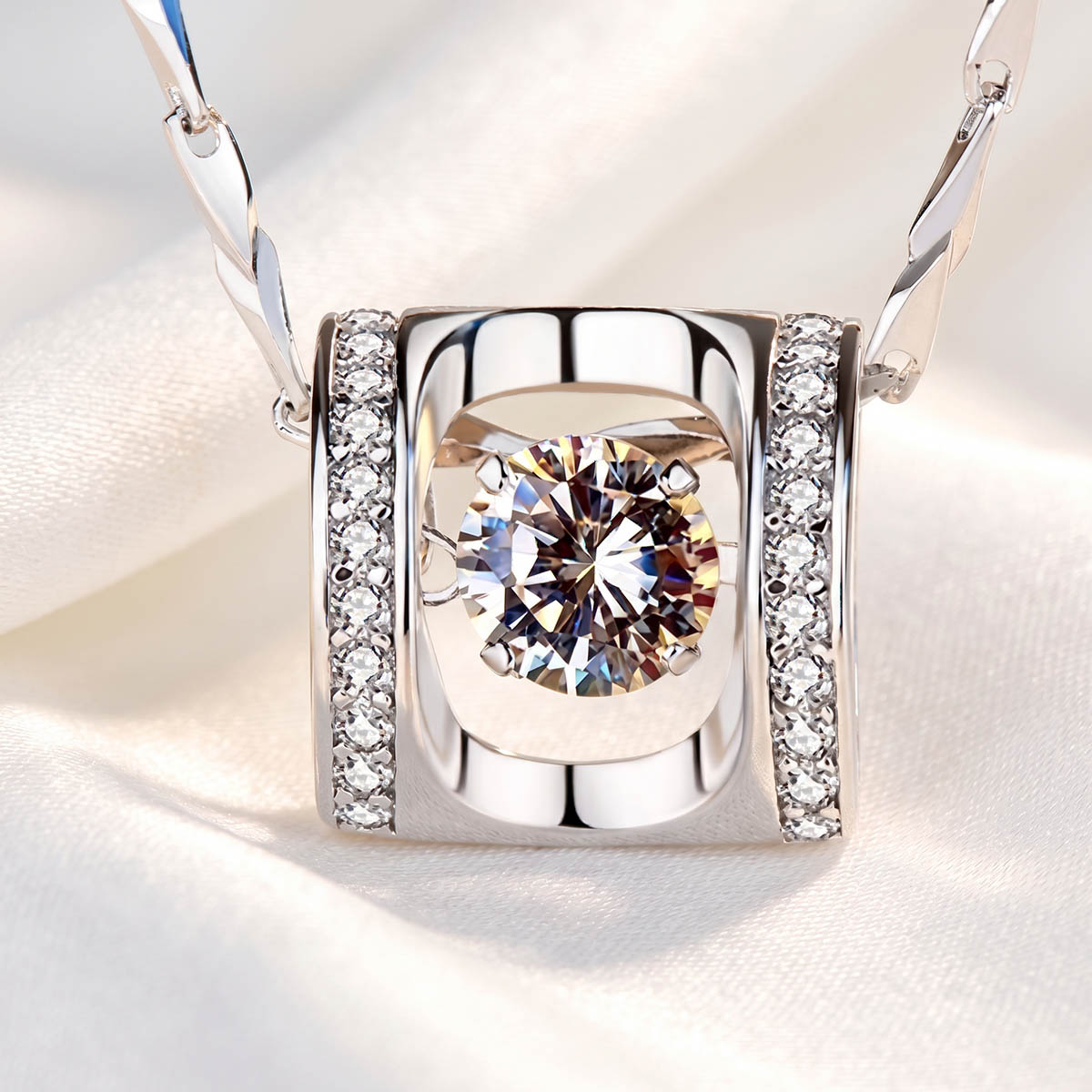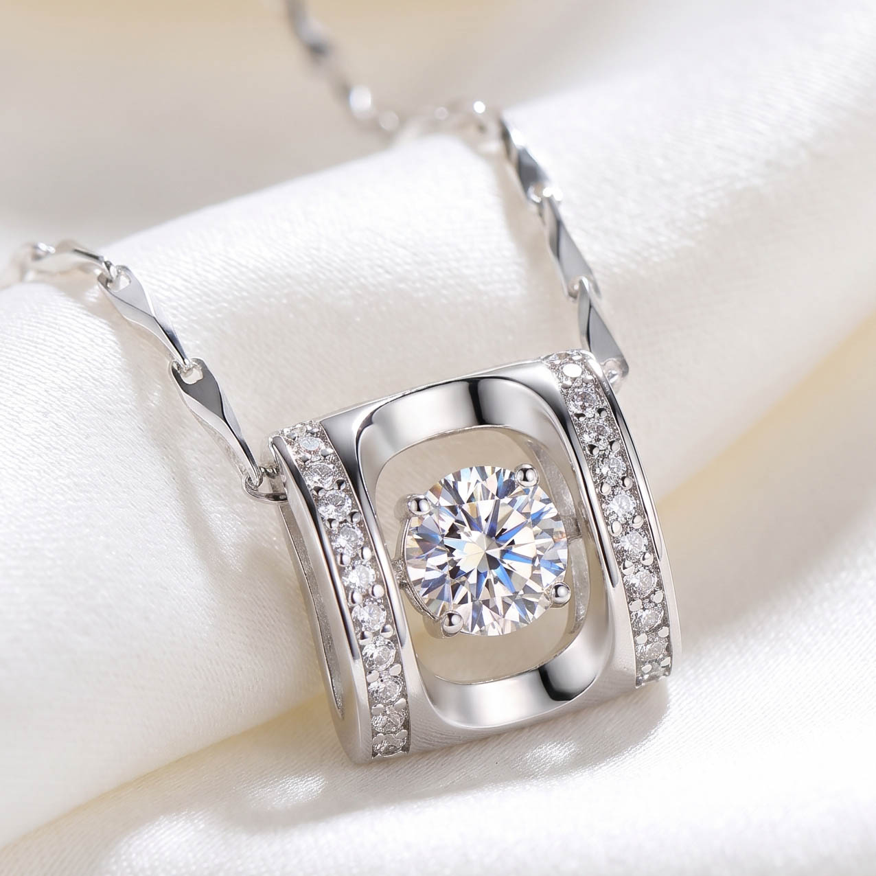 Mặt dây chuyền bạc 925 khung vuông đính đá cao cấp
