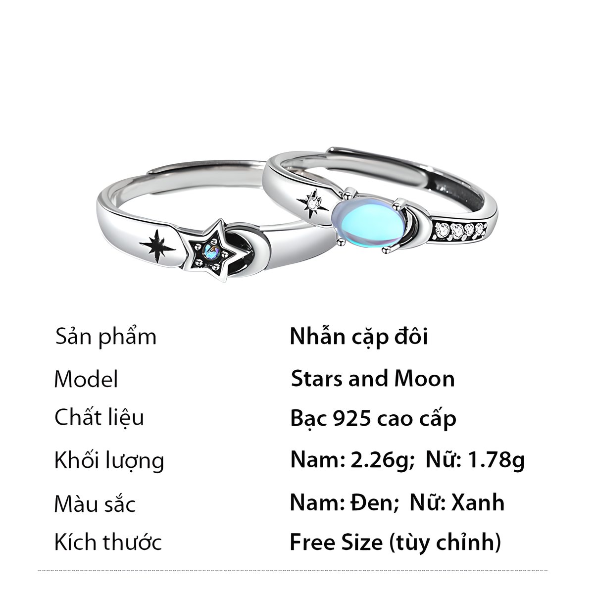 1 đánh giá cho Nhẫn bạc cặp đôi đẹp tình yêu Nam Nữ cao cấp – Stars and Moon Couple Ring