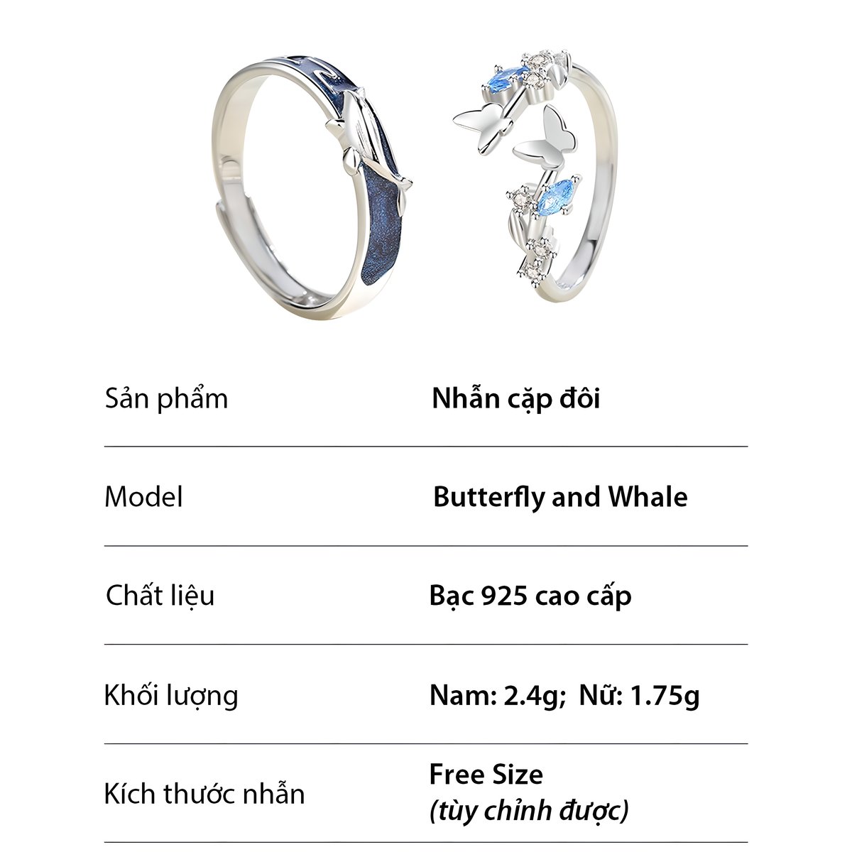 1 đánh giá cho Nhẫn tình yêu cặp đôi Nam Nữ đẹp cao cấp – Butterfly and Whale Couple Ring